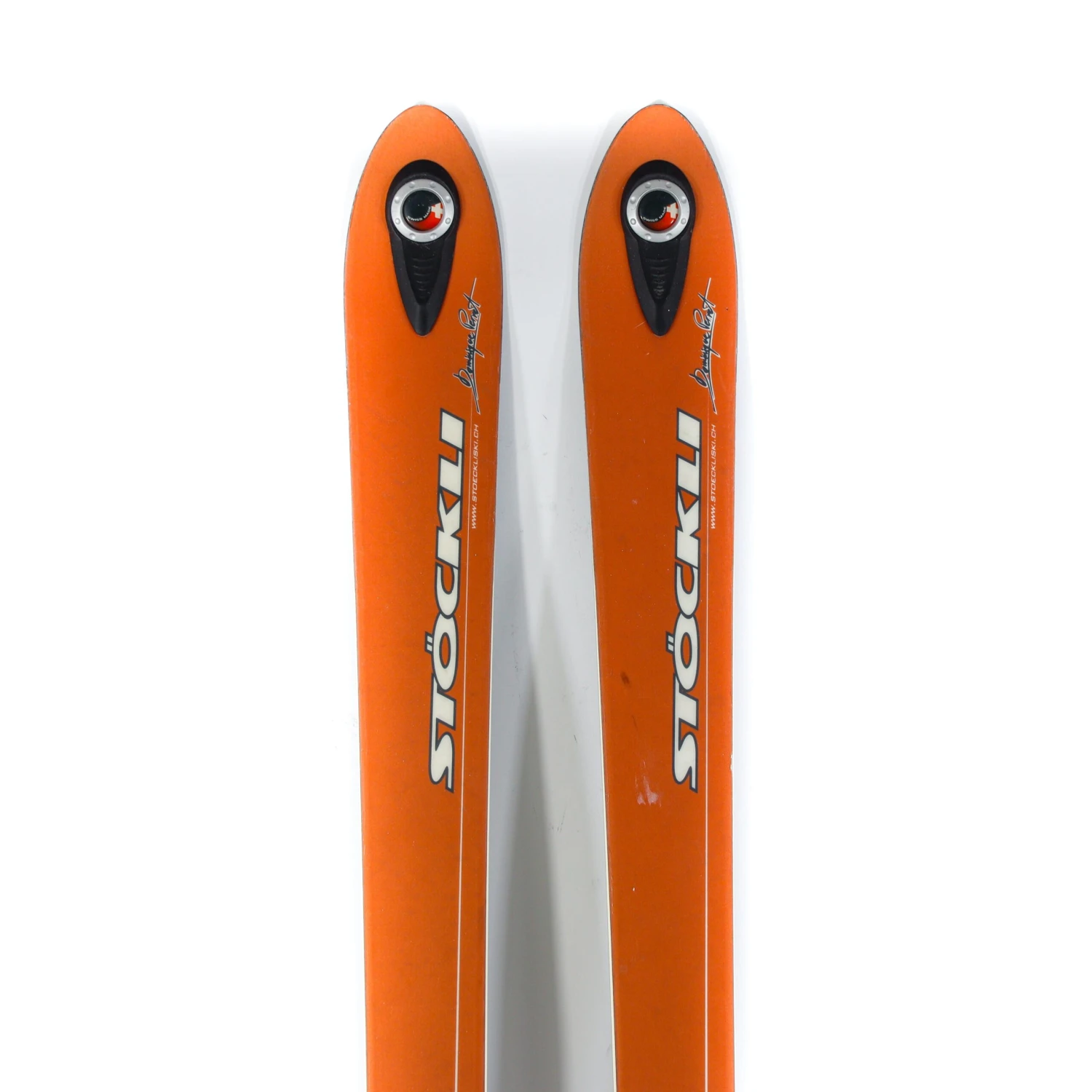 The 2002-03 Stockli Stormrider Fry is a legendary all-mountain ski that was designed and used by the world-famous extreme skier, Dominique Perret. According to Stockli’s marketing materials from back in ‘02, “The FRY is not for the meek, but for the all-mountain skier who won’t settle for anything less than the “best”.” And that sounds something like today’ (much wider) storm riders. Just like the contemporary skis, these FRYs were hand-made in Switzerland and feature a powerful, stiff, and energetic feel. Despite being just 73mm underfoot, in its heyday, it was seen as a mid-fat all-mountain ski with an incredible amount of edge hold and stability when railing through all sorts of terrain; hardpack, crud, and powder!
