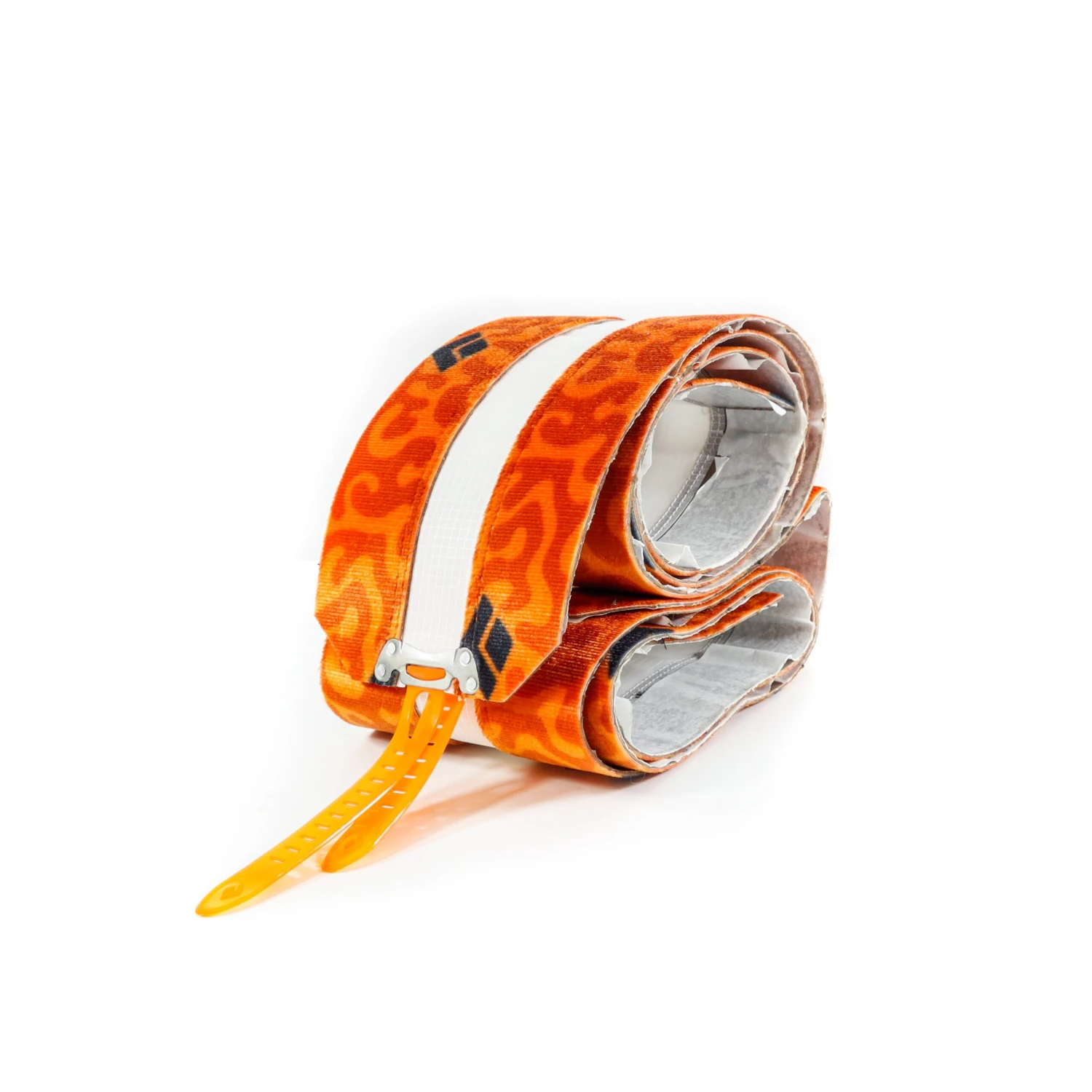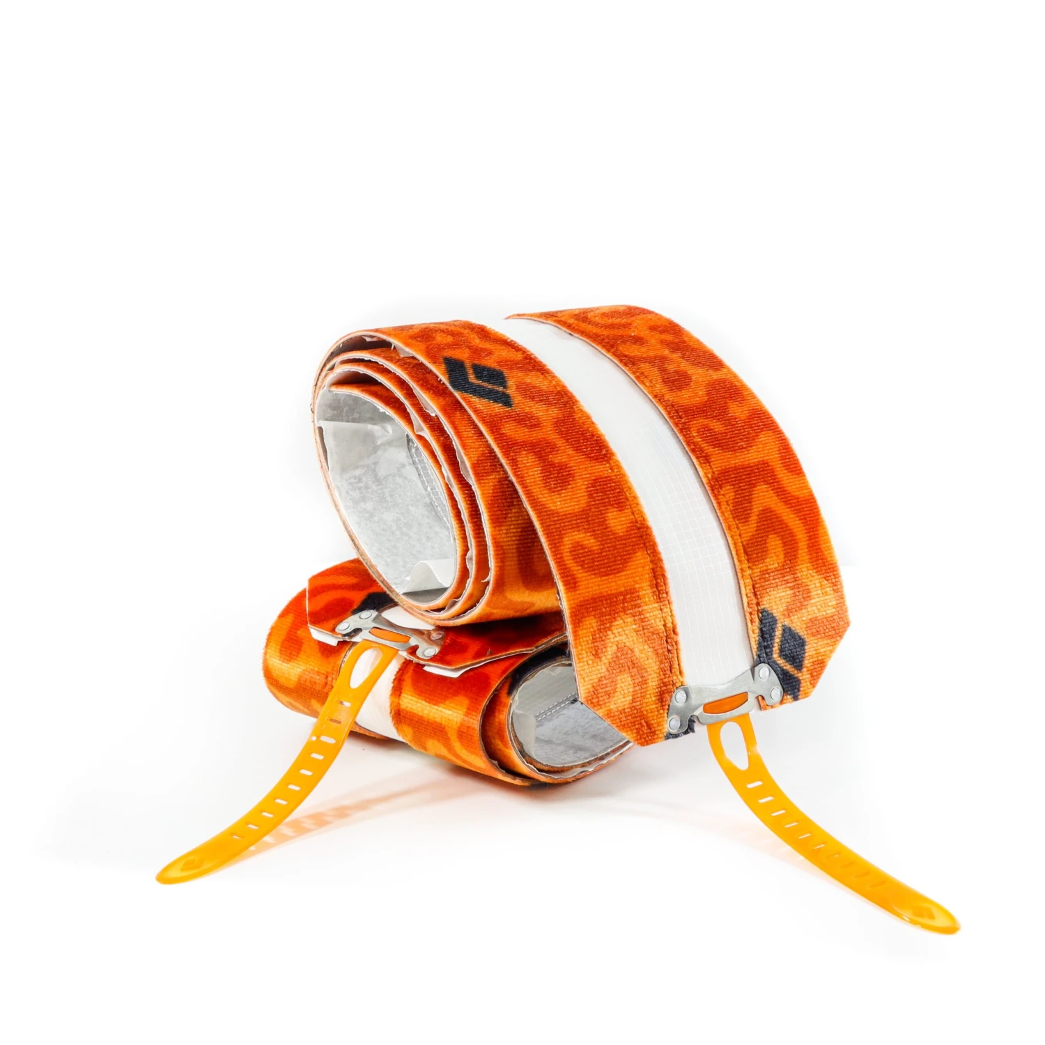 The ideal skin for those ultra-fat powder boats you’ve been dreaming of taking out of bounds. These Black Diamond skins are designed for skis wider than 120mm underfoot or for ultra-wide split boards. The strip of Dyneema fabric down the middle saves on weight and reduces drag on the ascent. The nylon plush has an incredible grip and Black Diamond glue is durable and watertight. These skins are brand new and have never been used, only stored. These skins do not include tip loops or tail clips.